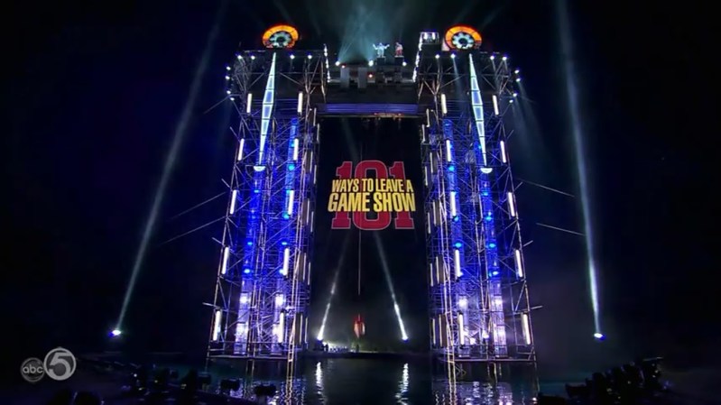 Premise- Eight players compete and are divided into two groups of four. Each group will be asked a toss-up question with a numerical answer. The player closest to the correct answer gets to choose the first answer to the next question. The next player closest gets to choose the second answer, and so on. Afterward, each group will be asked a question with four answers (three right and one wrong). The players who choose the correct answers will stay in the game, while the player who chose the wrong answer is eliminated from the game in one of 101 various ways, from being dropped off by a semi-truck to being yanked off a dock while tied to a speedboat. Four questions are played until two players are left in each group. In the final round, the final four players are asked a toss-up question followed one final question. This time, the question has four possible answers and only one correct answer. The player that chooses the correct answer wins the game and $50,000, while the other three players are dropped from a ten-story tower into a pool of water.
