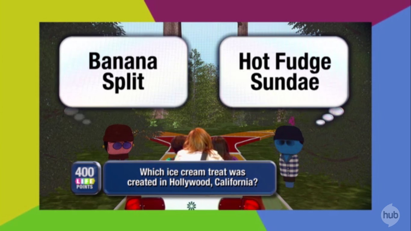 Even though there are a few things that I don’t like about the show, there are still a lot of things that I do like about the show. I think it goes without saying that the coolest aspects of show are the first two rounds where the teams get to ride in the Life Car. The moving car combined with the green screen technology reminds me of the old Back to the Future ride at Universal Studios in Florida. The kids, even the adults, look like they’re having fun “riding” in the Life Car and going on their short, virtual adventures while answering questions. I like how the animations don’t look cheap, cheesy, and slapped together at the last second. Like in Scrabble Showdown, The Game of Life also have great prizes to give away and the gameplay is also challenging. It may not be as fast-paced as Scrabble Showdown, but the questions are challenging and so are the physical stunts in round three. I find it interesting that the bonus round is as simple as it is and is easier than spinning for the bonus prize after the second round. In my opinion, I would have started the bonus round by letting the winning team choose three free spaces as the grand prize spaces and let the team try to double their chances by earning three more spaces. In terms of the host selection, Frank Nicotero is an excellent host for this show. He has the right amount of energy for The Game of Life, keeps the show flowing at a good pace, and he doesn’t try to turn every little thing into a joke.