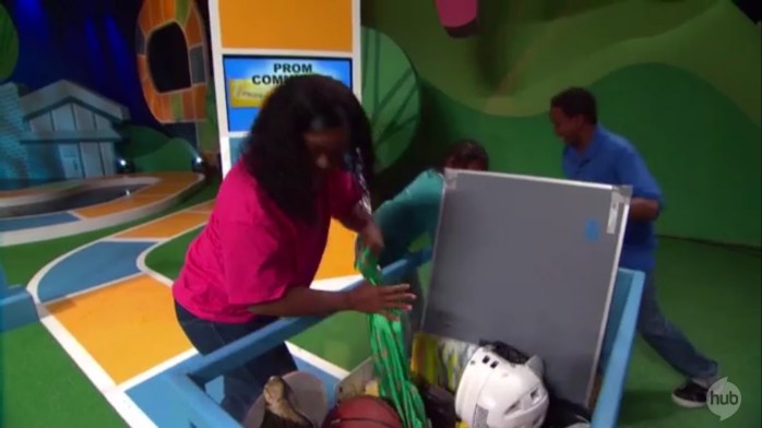 Premise- Two teams of three family members compete in a series of three rounds. In the first round, first will have their chance to ride in the Life Car and drive down a virtual “Game of Life” game board while answering questions. Each team can answer as many questions as possible as long as their Life Car had fuel. A correct answer won the team Life Points and an incorrect answer stopped their for a five second penalty, thus wasting fuel and time. Once a team ran out fuel, the round was over for that team. The second round is played the same as the first except one question in this round earned the team extra fuel and more time and the points were doubled. At the end of the second round, the team who is in the lead played for a bonus prize by spinning the Game of Life spinner. In the third round, the two teams competed in a 60-second physical stunt, where each item was worth 250 Life points. The team with the most points at the end of the third round won the game, a prize, and played in the bonus round. In the bonus round, the team will spin the spinner one final time for a grand prize. Five out the ten spaces will automatically be designated as the grand prize spots. The team can earn up to three more spaces based on how well they know each other. If the team landed on a grand prize space, they won the grand prize. Otherwise, they won a consolation prize.
