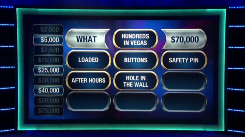 Premise- One contestant on the show plays for a beneficiary (usually a friend or family member) whom they feel deserves the money the most. The contestant will play a total of five rounds of guessing what the mystery “Who”, “What”, or “Where” subject is based on a series clues. The first round has a starting bank of $10,000, round two starting at $25,000, round three starting at $25,000, round four starting at $50,000, and round five starting at $100,000. The bank for each round is divided into nine increasing dollar values. A maximum of nine clues are hidden on the board as well as the nine hidden dollar values. In each round, the contestant is given one free clue. In order for a contestant to get additional clues to help them guess the subject, they must purchase the clue by picking one of the cards numbered from one through nine, with each card hiding a different dollar value. After the dollar value is revealed, it is subtracted from the bank in the round and the clue is revealed. The player may guess the subject at any time, but can only guess once. If they make the right guess, the remaining total left in the bank is added to their total winnings. If they make the wrong guess, they lose the remaining bank money and no money is added to their total. At the end of the show, the contestant’s beneficiary is surprised with the news that the contestant’s total winnings will be given to them as a surprise gift.