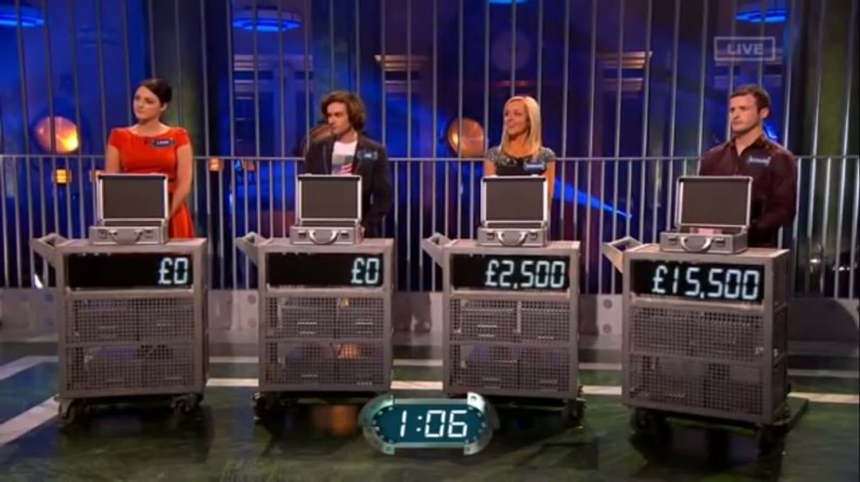 The U.K. has been in a rut with producing new and successful primetime game shows that will last for more than a season. With the arrival of the new live primetime game show The Bank Job, I believe that the U.K. has regained their composure of producing good and new primetime game shows. Even though The Bank Job is like Deal or No Deal mixed with trivia and this show has done a good job of not blatantly ripping off Deal or No Deal. On a quick side note, it’s very interesting to see how many game shows nowadays are using Deal or No Deal’s random number-picking, cash revealing gameplay as a part of their show, such as Secret Fortune and You Deserve It.This show has good gameplay filled with risk, knowledge, strategy, luck, and twists in every round to avoid stagnation in the show’s format. With this being said, there are a few things about the show that I don’t like.