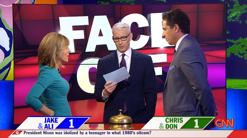 The bright spot in the series lied within the show’s host, Anderson Cooper. Cooper performed excellently as The CNN Quiz Show’s quizmaster. Of course, Cooper’s poised demeanor didn’t come as a total shock to me given his years of experience as a journalist on CNN and even as a contestant on celebrity episodes of Jeopardy!. What stood out the most while watching Cooper on the cable news channel game show was how he great of a job he did taking command of the show by calming the audience down during the beginning of the first round as well as the anchors who were basically hamming it up for most of the episode to get through the game faster. This echoed the emcee stylings of game show legends including Bill Cullen, Alex Trebek, Bob Barker and even Ray Combs on Family Feud.