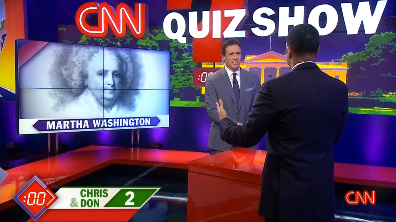 The CNN Quiz Show is as good as its title selection — it’s nothing more than just another generic quiz show made up of various elements from other game shows including Celebrity Name Game, Family Feud and Jeopardy!. With this being said, The CNN Quiz Show is not bad for what it is. Some of the commendable aspects of the show include fast-paced first round to get the contestants properly warmed up at the top of the game, introducing the new show with the familiar faces of CNN anchors on a holiday to try to garner the most viewers while most are enjoying their day off and the selection of challenging and interesting historical trivia questions used on the show, although the difficulty of the question were drastically reduced by the including multiple choice answers.