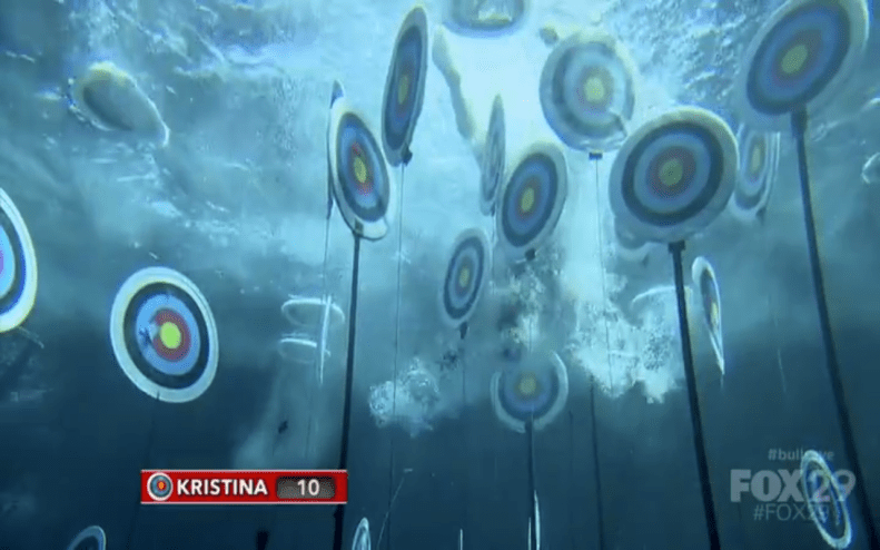 The following night, FOX debuted its new competition game show, Bullseye. The show has eight contestants (four women and four men) compete in a series of three extreme elimination rounds to test their accuracy, agility and speed. The last contestant standing at the end of the third stunt wins $50,000. It’s as simple as that.